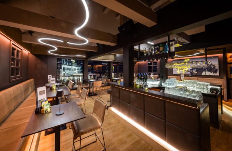 Step into the first floor of Crazy Daisy – our restaurant with an upper terrace that offers a warm and inviting atmosphere year-round. In winter, enjoy live music that fills the space with cozy vibes, making every visit special. In summer, our upper terrace provides the perfect spot to take in stunning views of Lake Zell, allowing you to unwind and savor the evening in style. Our menu features dishes crafted to delight guests of all ages, complemented by a selection of fine drinks and exquisite wines. Whether you’re in the mood to dance, relax, or savor a delicious meal, this space is designed for unforgettable evenings.”